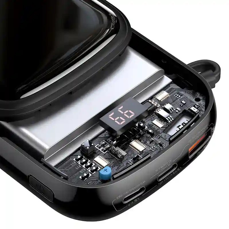 A beépített Lightning kábellel ellátott Baseus Qpow Pro powerbank USB-C és USB portokkal rendelkezik, így akár 3 eszközt is tud egyszerre tölteni. Támogatja az SCP, FCP, QC és PD gyorstöltési protokollokat is, és mindössze 30 perc alatt tölti fel az Apple 13-50%-át.