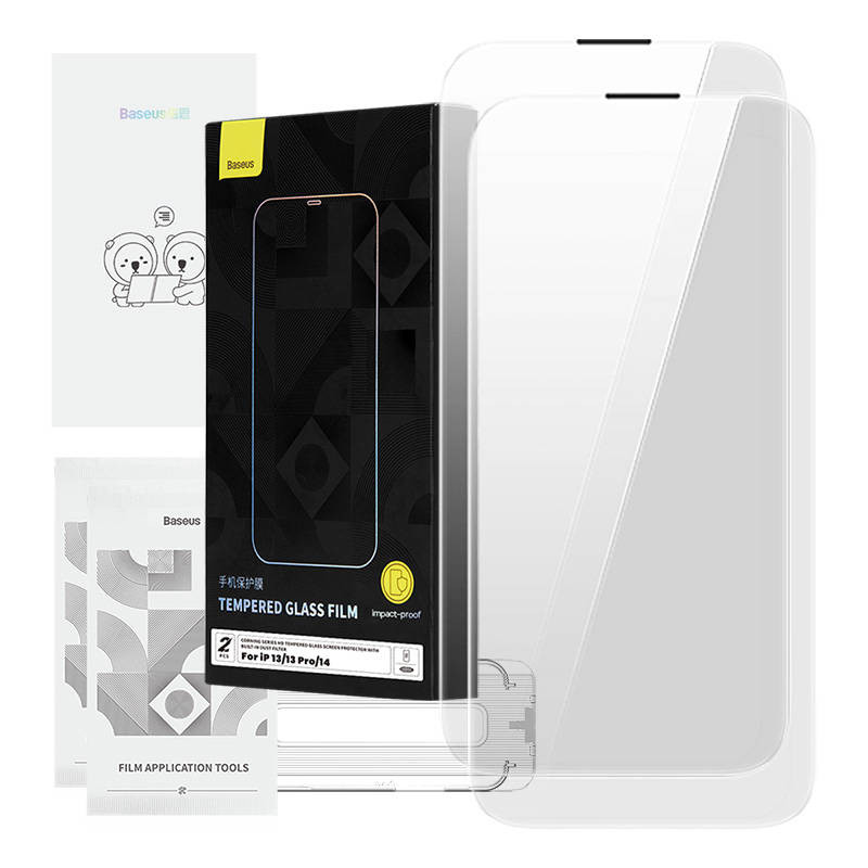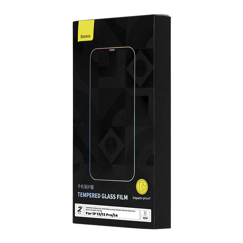 Baseus Corning edzett üvegfólia porszűrővel, iPhone 13/13 Pro/14 készülékhez