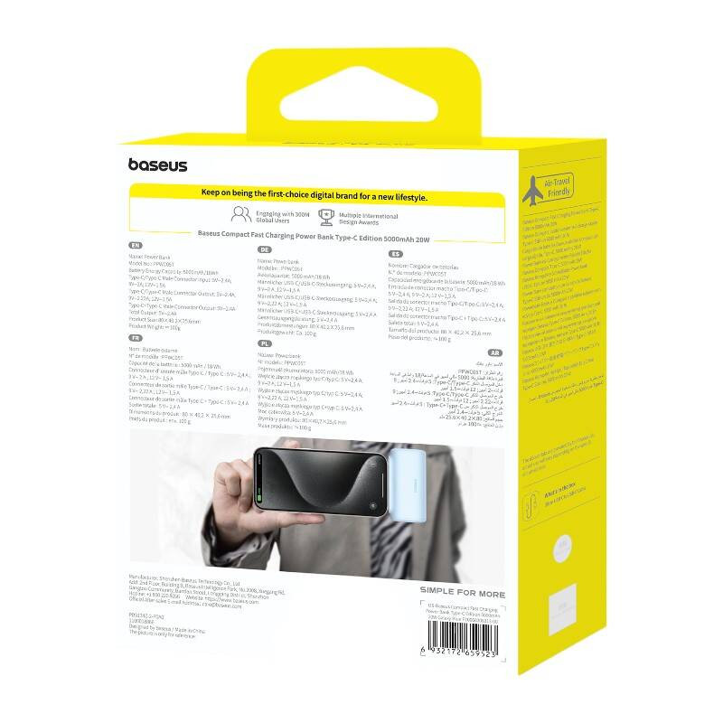 With a capacity of 5000mAh, the Baseus Compact is the ideal solution for anyone who appreciates fast and efficient charging of their mobile devices. With a power of up to 20W, you can be sure that your smartphone or tablet will be up and running in no time. Its compact design means you can always carry it with you, ready for action at any time, and the absence of tangled cables makes it even easier to use.