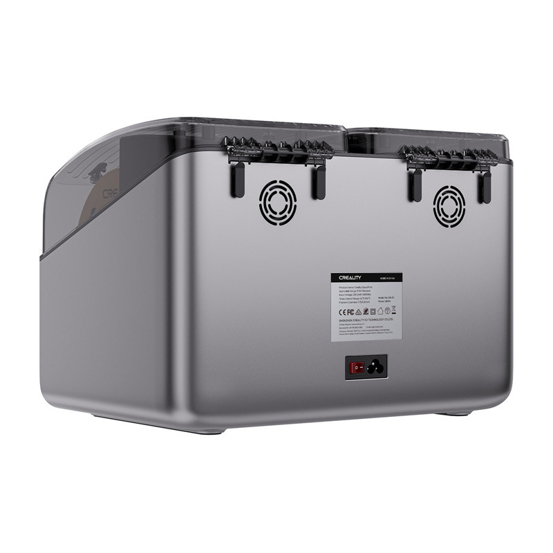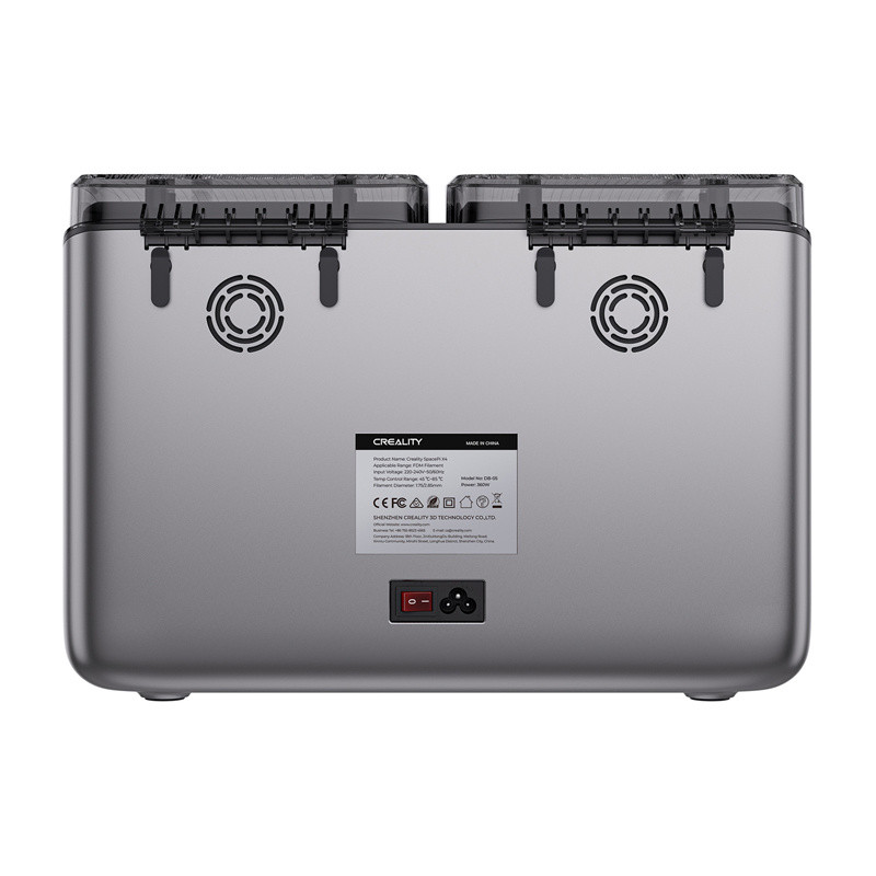 A Creality SpacePi X4 egy nagy teljesítményű, kétkamrás szálszárító, amely lehetővé teszi akár 4 orsó egyidejű szárítását is, 45 és 85°C közötti teljes hőmérséklet-szabályozással. Az aktív párátlanítási technológiának, a gyors fűtésnek és a csendes működésnek köszönhetően reprodukálhatóan és stabilan készítheti elő a PLA, PETG, TPU, ABS vagy PA-CF filamenteket nyomtatásra, kiküszöbölve a nedvesség, a buborékok és a nyomtatás közbeni ütődések problémáját.
