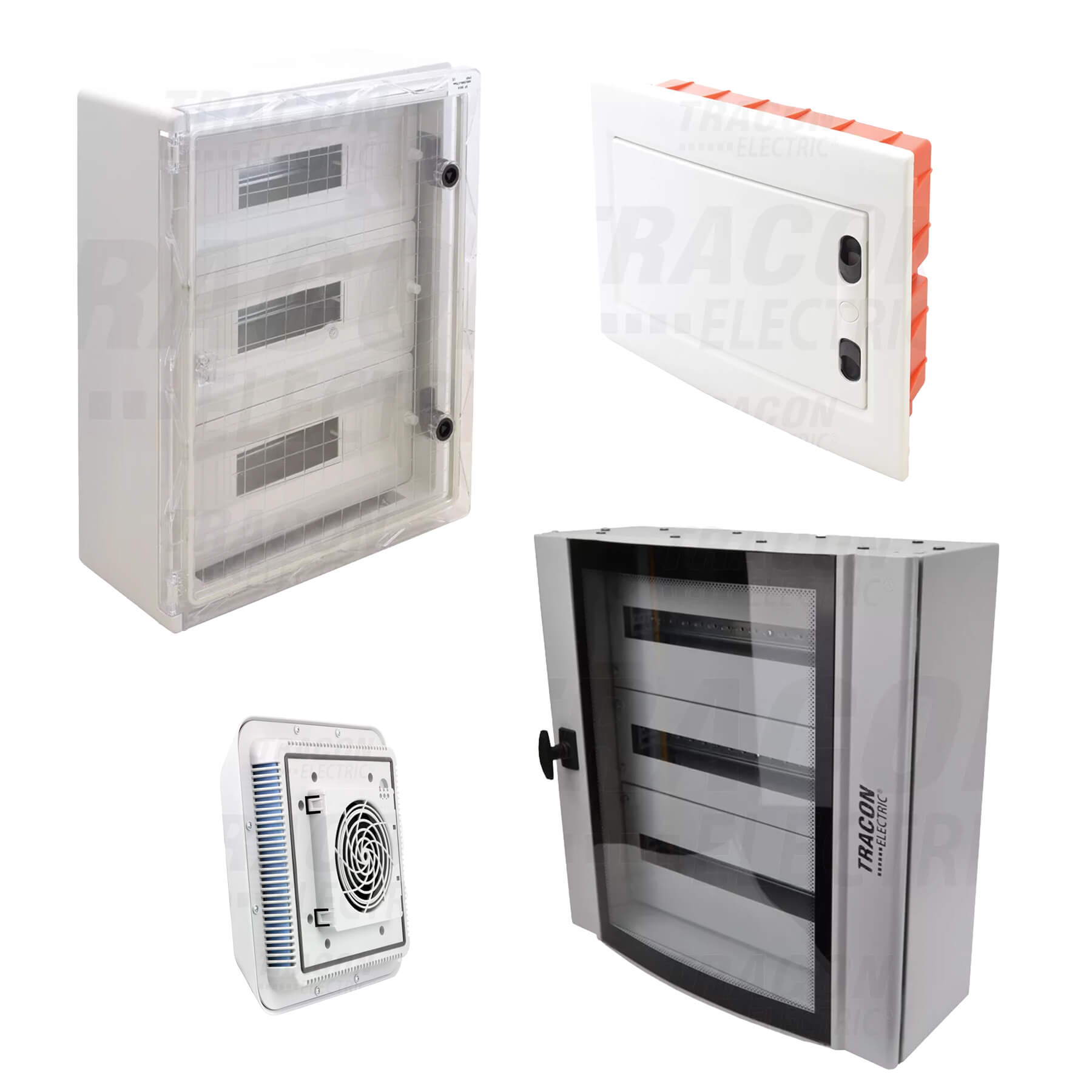 A speciális igények kielégítésére rendelkezünk ívelt biztonsági üveg- és fémajtós elosztószekrényekkel is, amelyek esztétikus megjelenést és fokozott biztonságot biztosítanak, lehetővé téve a szekrény belső tartalmának könnyű ellenőrzését anélkül, hogy az ajtót kinyitnánk.