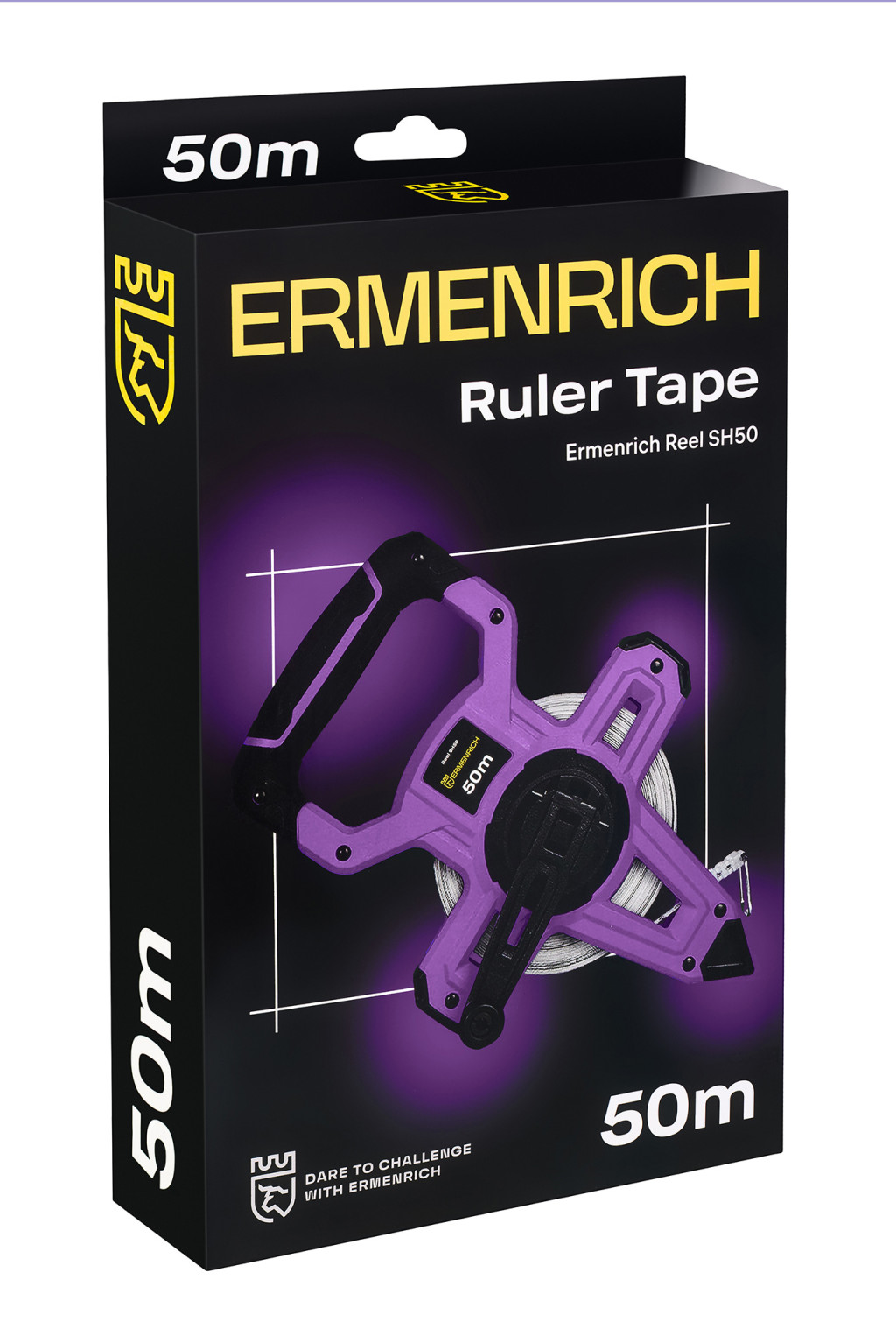 A kontrasztos jelölésű, csiszolt acélból készült kopásálló szalag munka közben nem törik el. Az Ermenrich Reel SH50 mérőszalag tokja tartós ABS műanyagból készül, ami a kemény ütődéseknek is ellenáll. Hőre lágyuló gumiból (TPR) készült betétek is találhatók rajta. A fogantyú gumírozott bevonata nemcsak fokozza a tartósságot, hanem kényelmes és könnyű fogást biztosít, hogy a szerszám ne csússzon ki a kezéből. Az önzáró mechanizmussal biztosított szalag az oldalsó gombbal tekerhető fel.