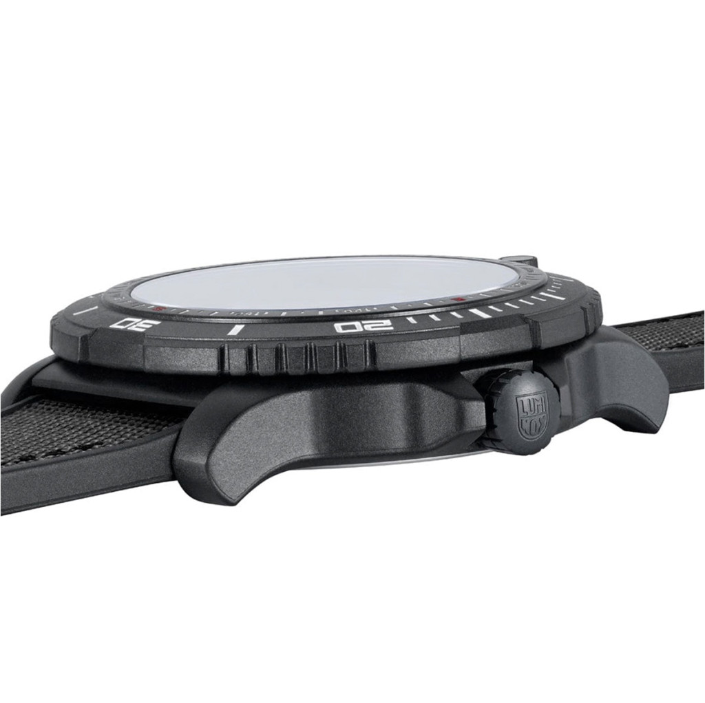 Sarkvidéki páncélzat és leolvashatóság A robusztus, 45 mm-es tok a Luminox saját fejlesztésű CARBONOX™anyagából készült. Ez a high-tech kompozit biztosítja, hogy az óra ultrakönnyű és kényelmes viselet legyen egész nap, miközben rendkívüli ütésállóságot és tartósságot garantál. A különleges, texturált fekete számlapot – mely az izlandi lávamezőket idézi – tükröződésmentes bevonattal ellátott karcálló zafírüveg védi, biztosítva a kristálytiszta leolvashatóságot a legdurvább környezetben is.