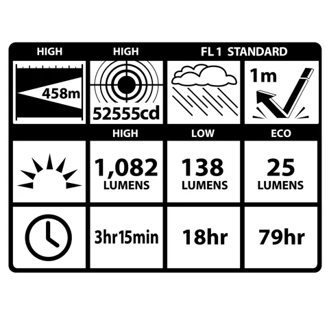 A QuickFocus™ rendszerrel mindössze negyed fordulattal válthatsz a szűk, fókuszált fény és a széles szórt fény között, míg a QuickClik® kezelőfelület könnyű hozzáférést biztosít az előre beállított világítási módokhoz: High, Low, Eco, Strobe (12 Hz), valamint Momentary. A beépített funkciókészletek különféle felhasználási területekhez (általános, kültéri, rendvédelmi, katonai) igazodnak.