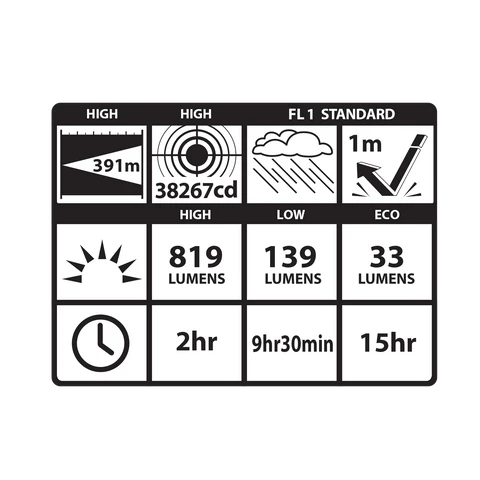 A QuickFocus™ rendszer lehetővé teszi a gyors váltást a koncentrált pontfény és a szélesen szórt világítás között – mindezt csupán egy negyed fordulattal. A QuickClik® elektronikus kapcsoló révén az öt választható világítási mód (High, Low, Eco, 12 Hz Strobe, Momentary) könnyen aktiválható és személyre szabható – attól függően, hogy általános, kültéri, rendvédelmi vagy katonai környezetben használod a rúdlámpát.