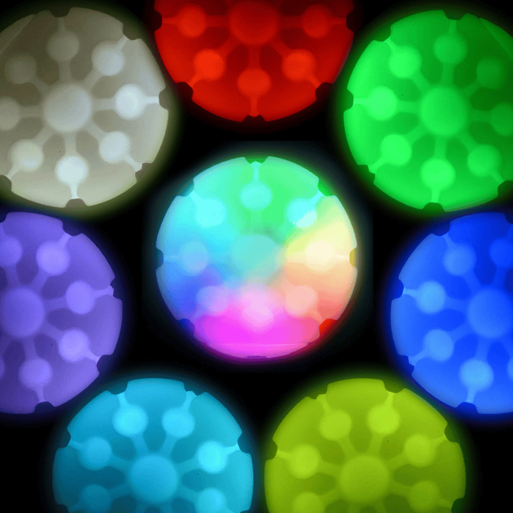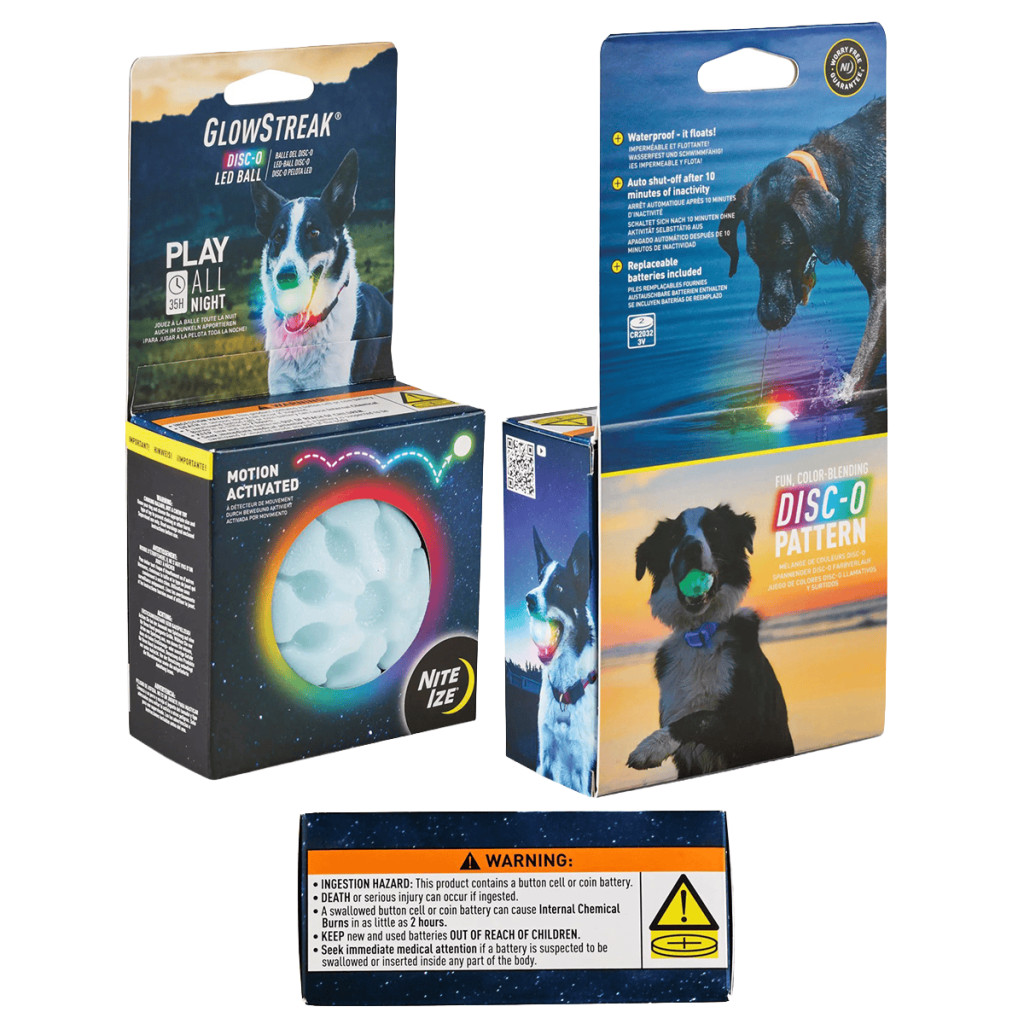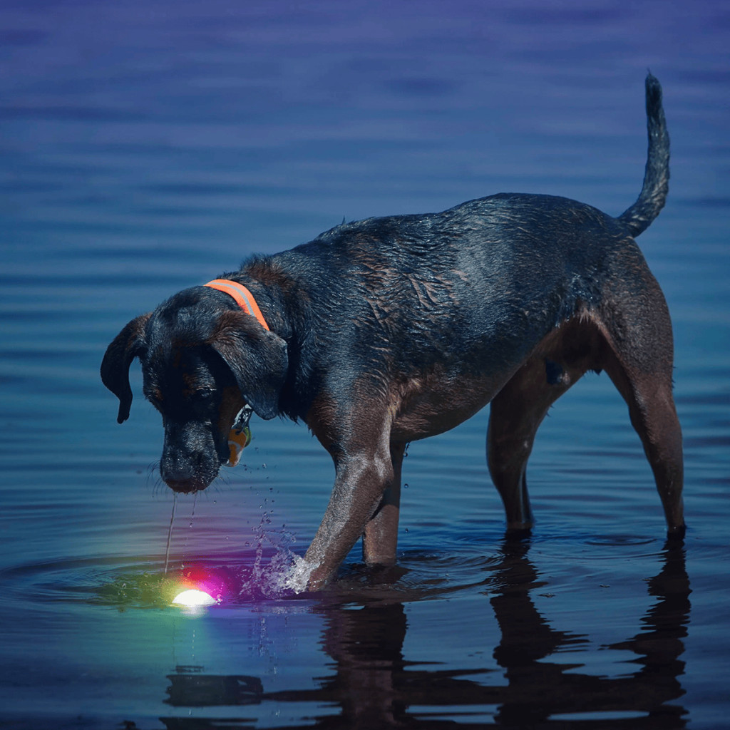 Ez a robusztus gumilabda egy védett belső magot rejt, amely egy fejlett, mozgásra aktiválódó, színváltós Disc-O LED modult tartalmaz. Egy egyszerű pattintással bekapcsol.