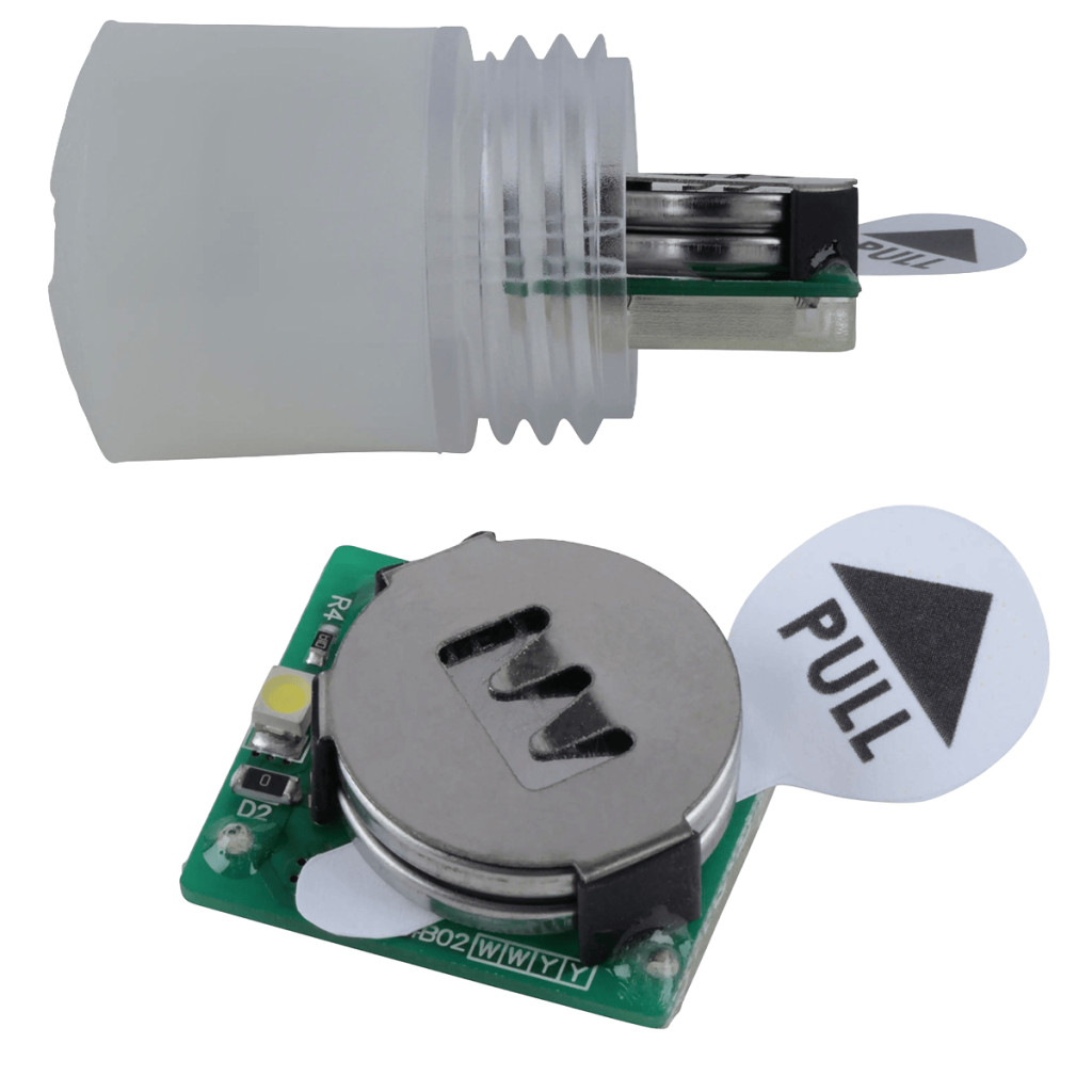 A formázott, ütésálló és kivehető polikarbonát mag foglalja magába a LED/elem modult. A mag biztonságosan a helyére csavarozható, ami teljesen vízállóvá teszi a labdát.