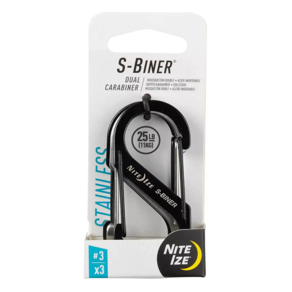 S -Biner® dupla karabiner acél #3 - 3-as csomag - fekete/acél