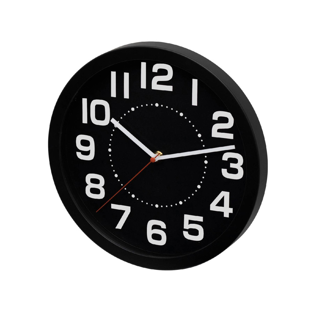 A 250 mm átmérőjű óra számlapja nagy, kontrasztos számokkal készült, amelyek még távolról vagy oldalról is könnyen és gyorsan leolvashatók. Az élénk piros másodpercmutató külön kiemeli a mozgást, így az idő mindig pontosan észlelhető, akár sietős reggeleken, akár csendes délutánokon.