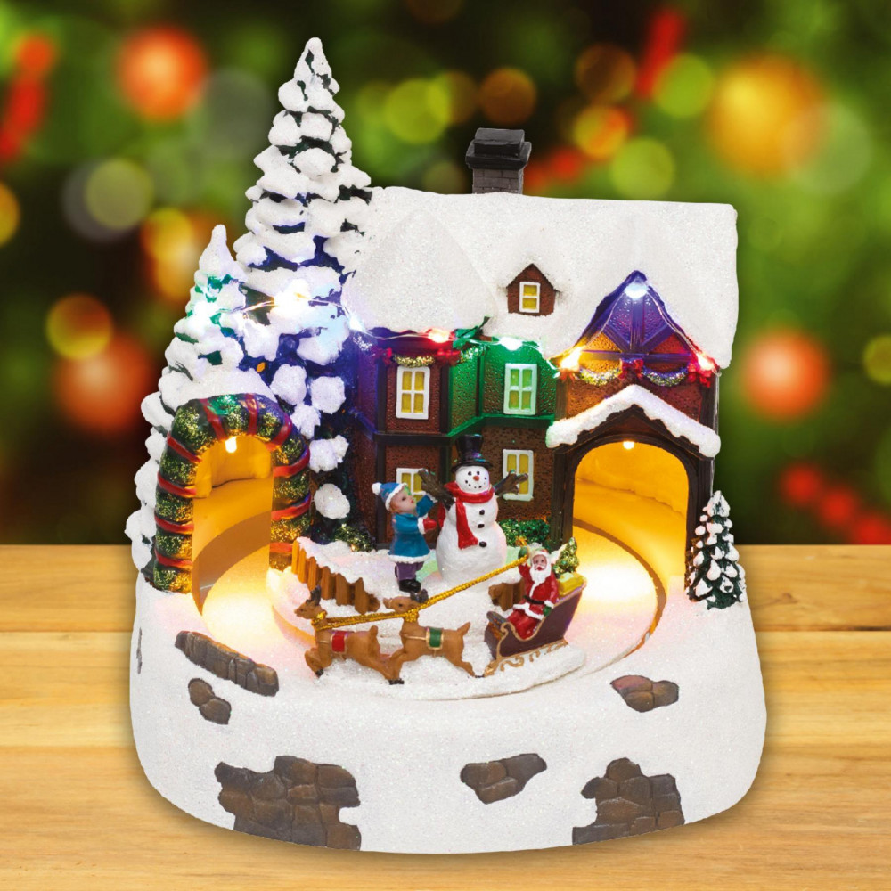 Home DRM 15 dioráma, havas ház, színes LED, rénszarvasszán, beltéri