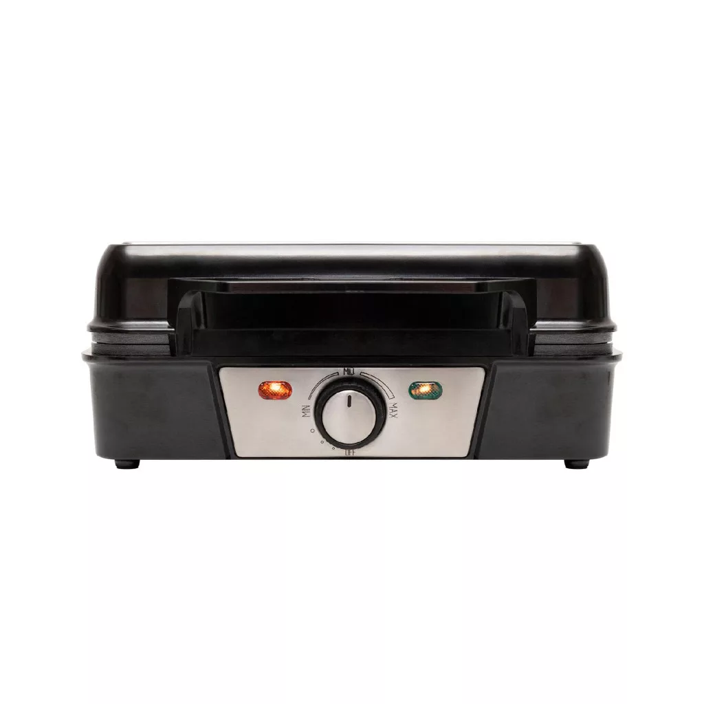 A készülék strapabíró, rozsdamentes burkolattal rendelkezik, amely nemcsak esztétikus megjelenést kölcsönöz, hanem hosszú távú tartósságot is biztosít. A sütésre kész és áram alatt jelzőfények segítenek a könnyű használatban, így mindig pontosan tudni fogja, mikor kezdheti el a sütést.