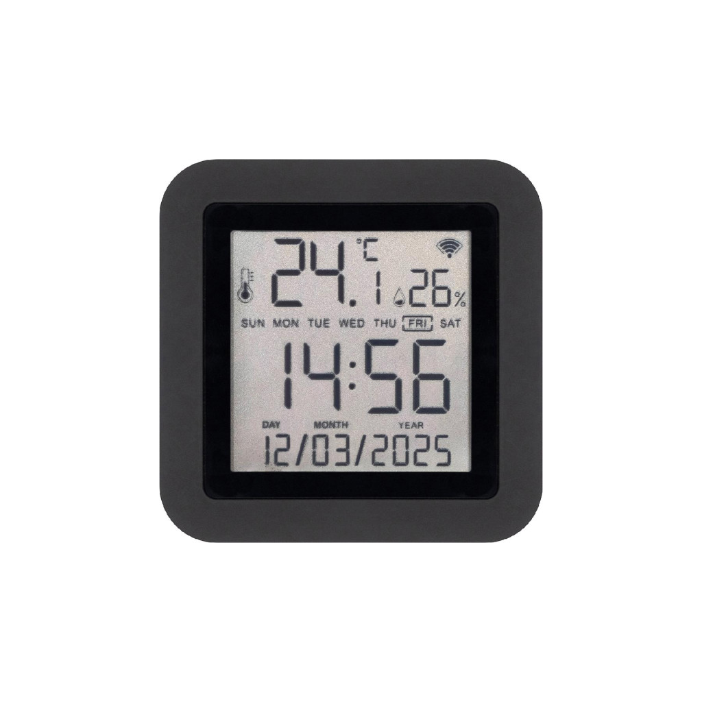 A multifunkciós LCD kijelző mindig pontos információt nyújt a beltéri klímáról. USB-C tápellátásának köszönhetően nem kell elemekkel bajlódnia – egyszerűen csatlakoztassa egy fali adapterhez vagy számítógéphez, és máris üzemkész.