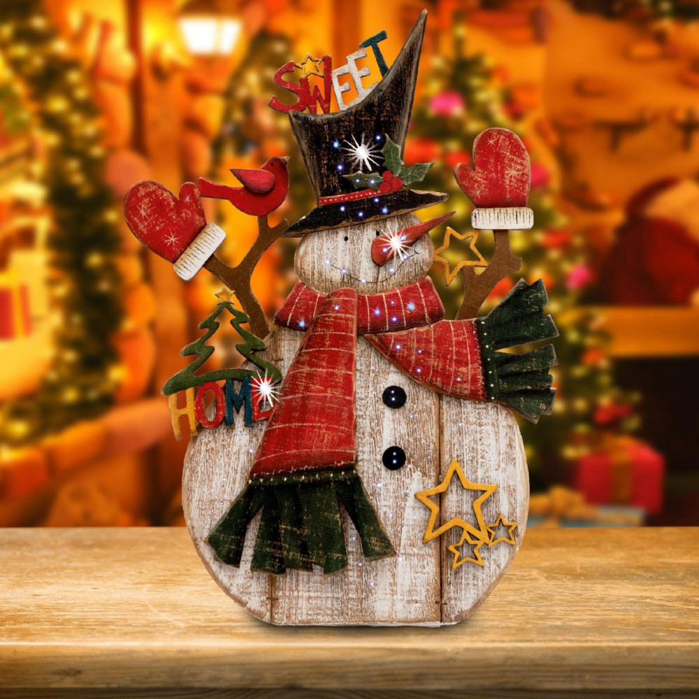 KAD 34 Home KAD 34 optikai szálas asztali dísz, festett fa hóember, színes fénypontok