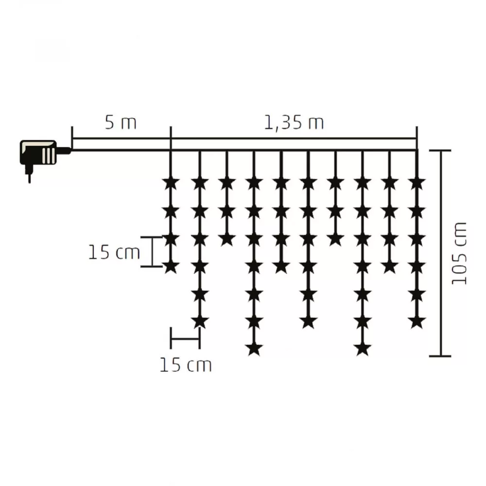 Home KAF 50L/WW LED-es csillag fényfüggöny, 1,35 m / 50 db melegfehér LED csillag figurákban, átlátszó vezeték, hálózati adapter, beltéri kivitel