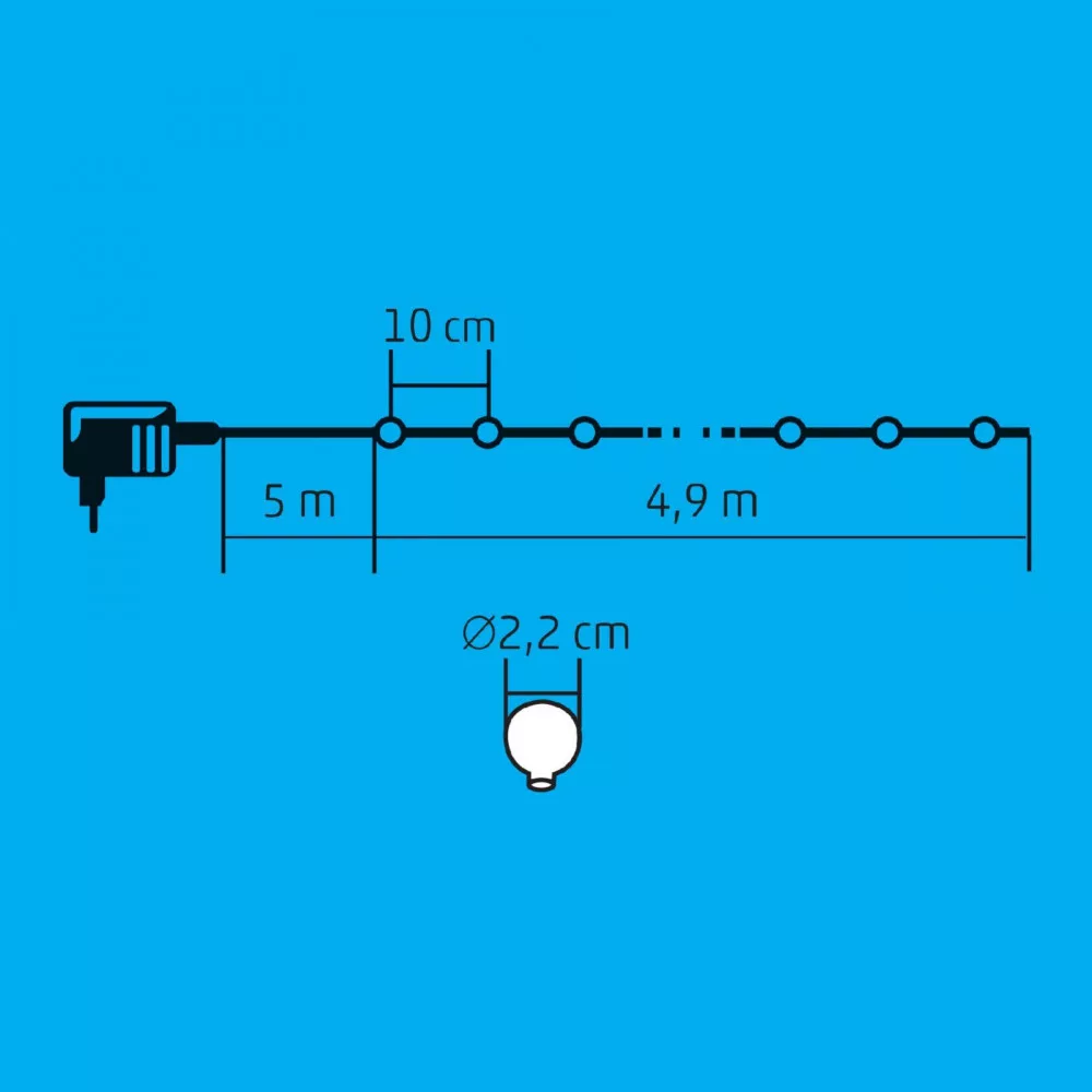 Home KBC 50 LED-es gömb fényfüzér, 4,9 m / 50 db színváltó LED, opál gömb dekoráció, fekete vezeték, hálózati adapter, kül- beltéri kivitel