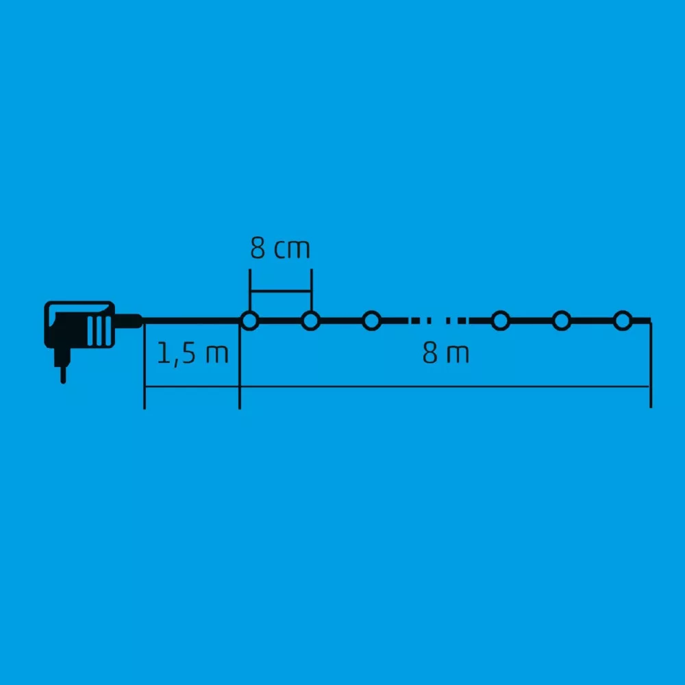 Home KII 100/WH LED-es fényfüzér, 8 m / 100 db hidegfehér LED, állófényű, zöld vezeték, hálózati adapter, beltéri kivitel