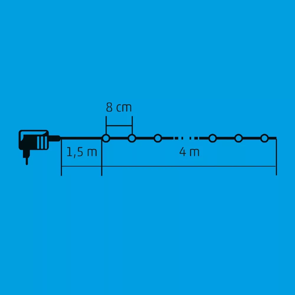 Home KII 50/WW LED-es fényfüzér, 4 m / 50 db melegfehér LED, állófényű, zöld vezeték, hálózati adapter, beltéri kivitel