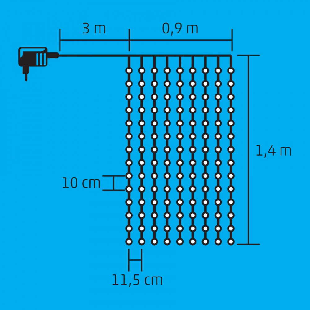 Home KIN 126C/WH LED-es fényfüggöny, 0,9x1,4 m / 126 db hidegfehér LED, fehér vezeték, állófényű, hálózati adapter, beltéri kivitel