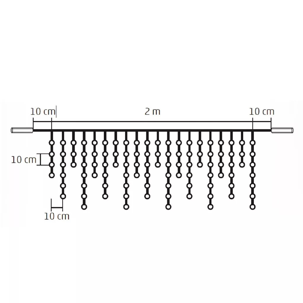 Ez a lenyűgöző fényfüggöny 100 db hidegfehér LED-del világítja meg az otthont, teret adva az ünnepi hangulatnak, miközben hideg, téli fényt áraszt. Ideális megoldás ablakok, erkélyek, teraszok, kerítések vagy belső terek dekorálására, hiszen különleges, szemet gyönyörködtető látványt nyújt, és a LED technológia hosszú élettartamot biztosít alacsony energiafogyasztás mellett. Ez a 2 méteres, sorolható fényfüggöny lehetővé teszi, hogy több szettet is egymáshoz kapcsoljon, így igény szerint bővítheti a fényfüzér hosszát.