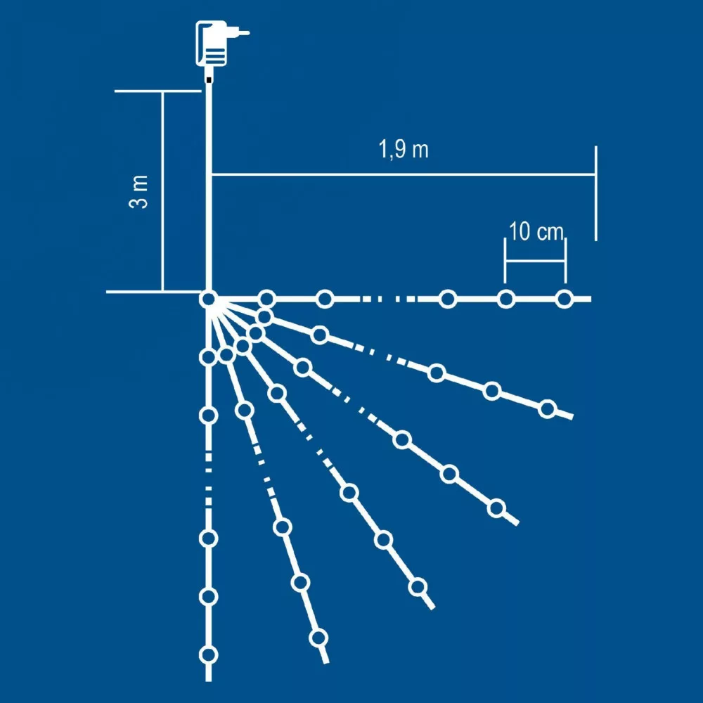 Home ML 120/WW micro LED-es fényfüzérköteg, 120 db melegfehér micro LED, 6 ágú, vékony, ezüstszínű vezeték, hálózati adapter, kül- és beltéri kivitel