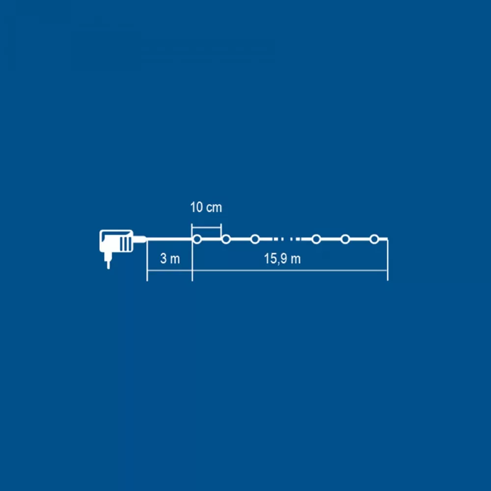 Home ML 160/WH micro LED-es fényfüzér, 15,9 m / 160 db hidegfehér micro LED, állófényű, vékony vezeték, hálózati adapter, kül- és beltéri kivitel