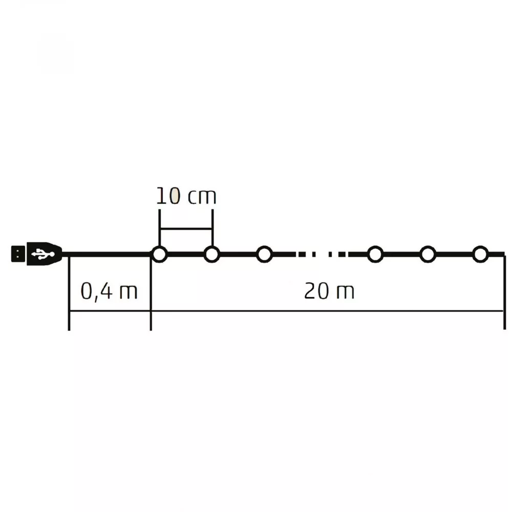 Home ML 200 RGB SMART micro LED-es fényfüzér, 20 m / 200 db RGB micro LED, applikációval vezérelhető, USB csatlakozó, beltéri kivitel