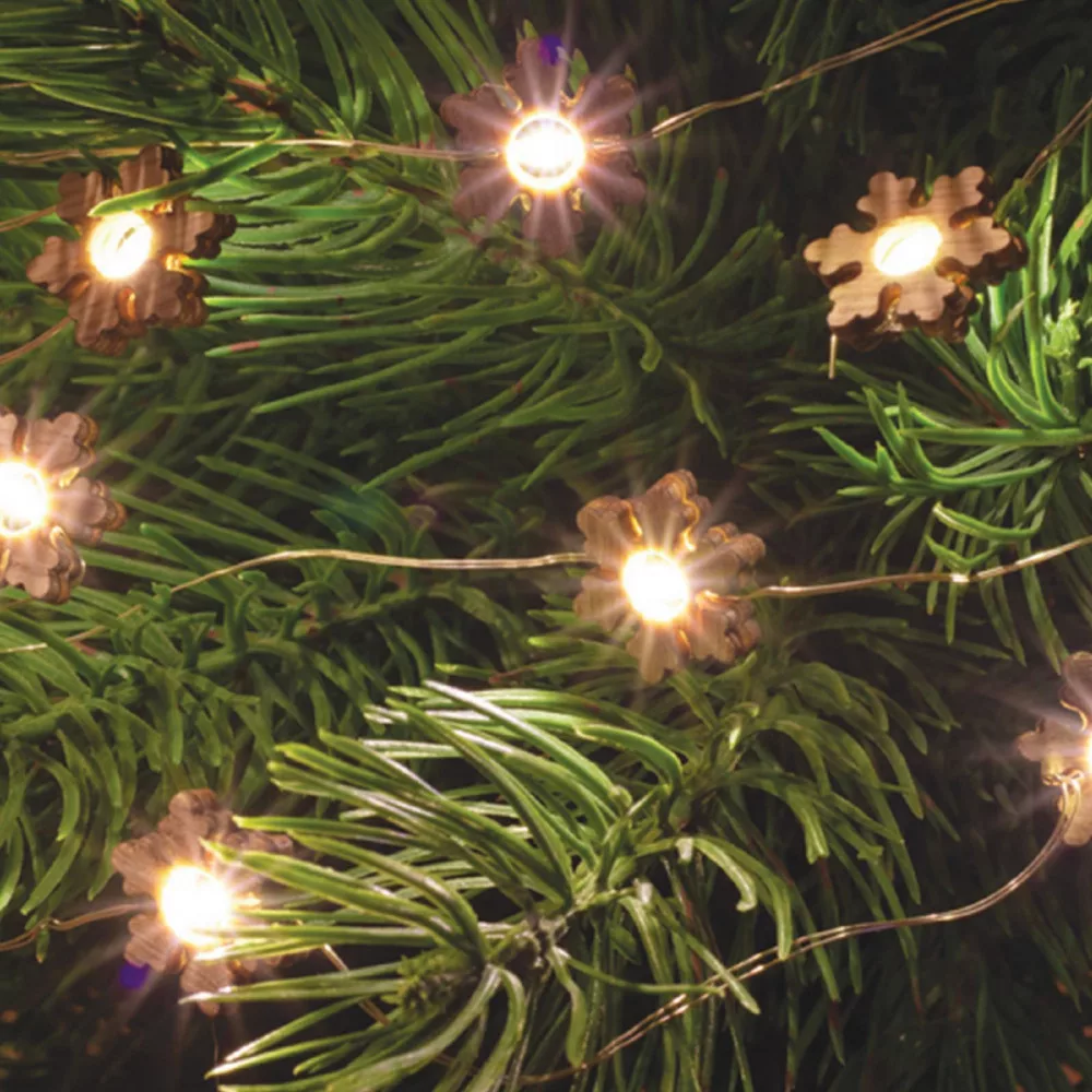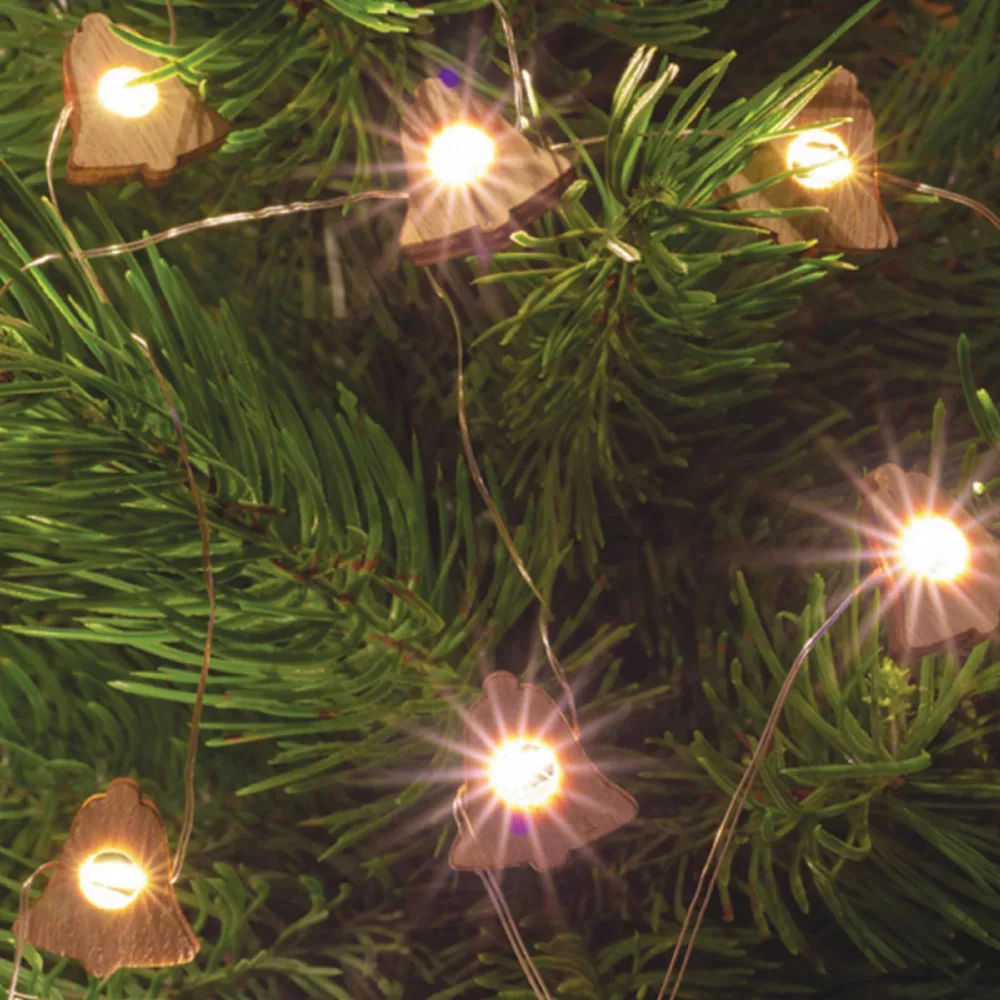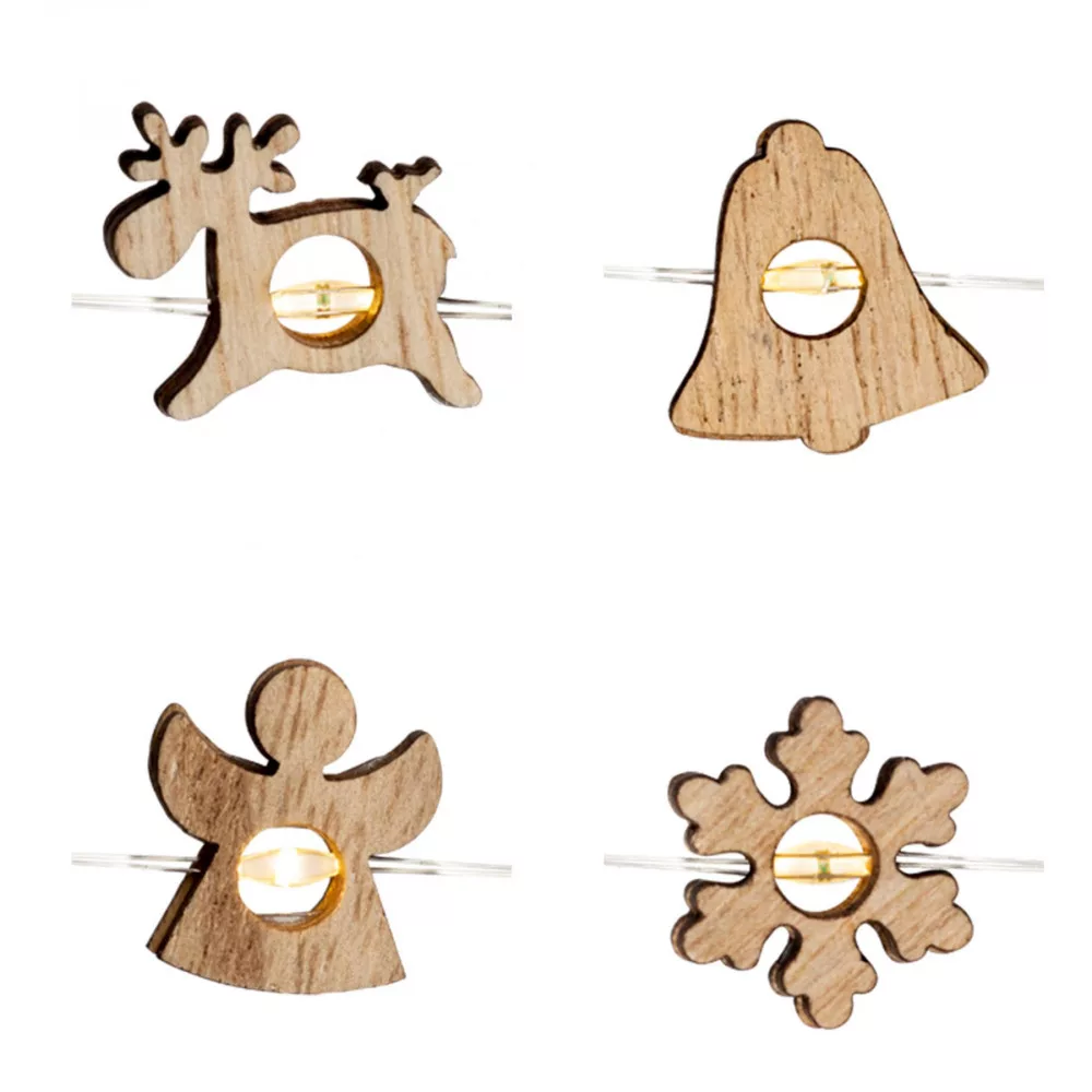 Home ML 23/WW micro LED-es fényfüzér, 1,9 m / 20 db melegfehér LED, rénszarvas, harang, angyal, hópehely fa figurákkal, átlátszó vezeték, elemes, beltéri kivitel