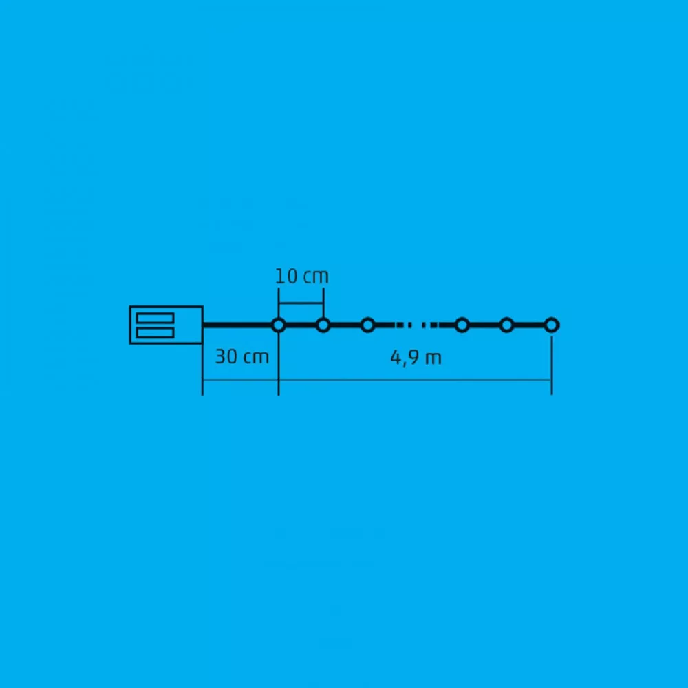 Home ML 50/M micro LED-es fényfüzér, 4,9 m / 50 db színes micro LED, állófényű, kapcsolható és időzíthető, átlátszó vezeték, elemes, beltéri kivitel