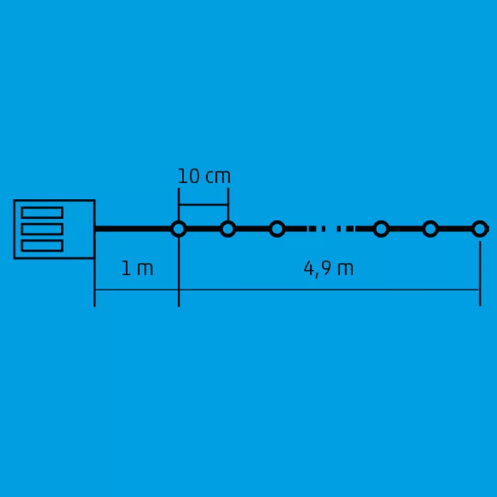 Home MLC 58/M mini LED-es fényfüzér, 4,9 m / 50 db színes LED, 8 fényprogram, zöld vezeték, elemes, kül- és beltéri kivitel