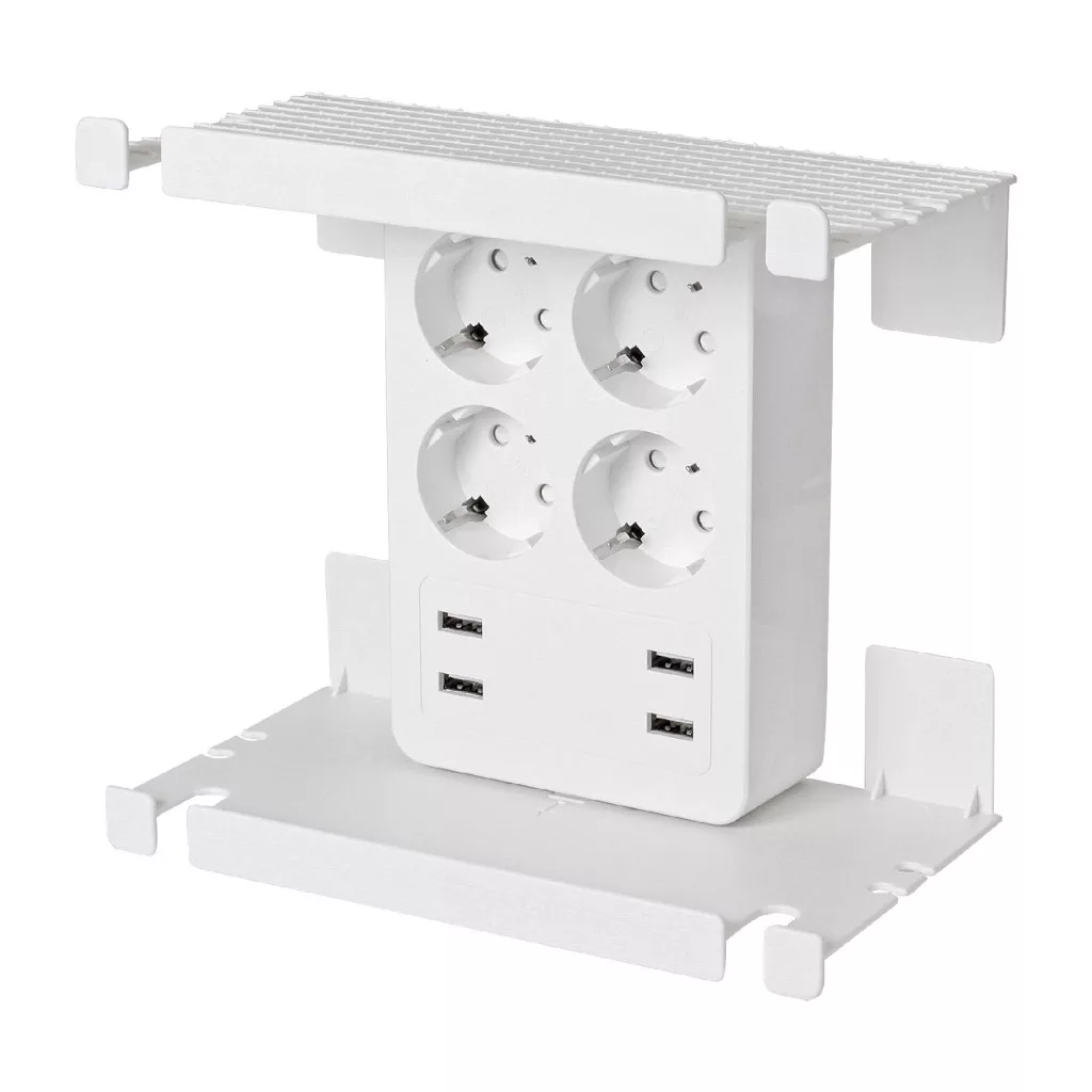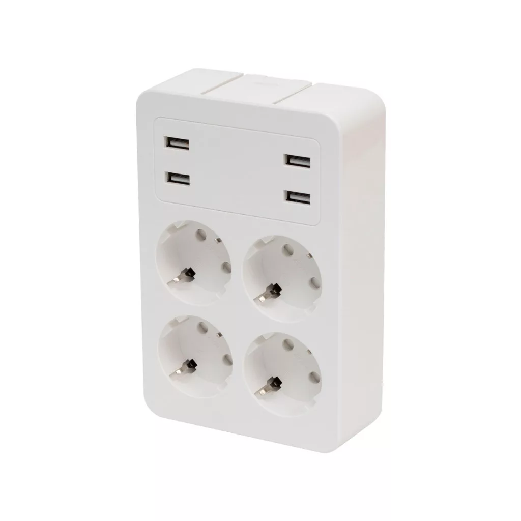 Home NV41USB tálcás USB-s elosztó, 4 földelt aljzat, 4 USB aljzat össz. 1,9A, elforgatható csatlakozódugó, max.3680W,