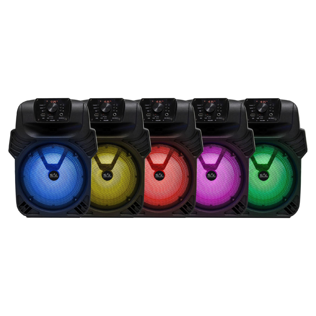 SAL PAR20BTC party hangdoboz, 2-utas hangrendszer, bass-reflex mélysugárzó, Bluetooth, FM rádió, digitális kijelző, LED fényeffekt