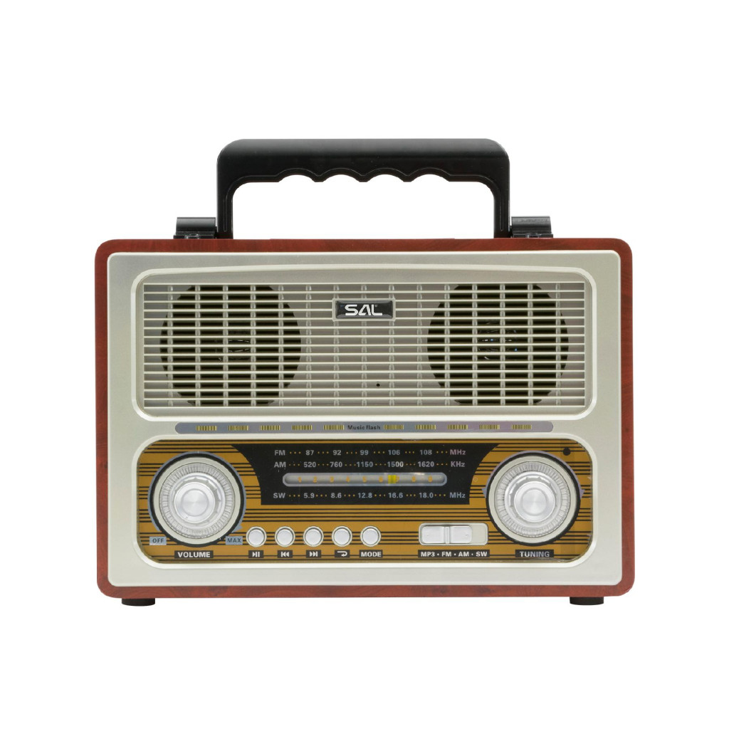 SAL RRT3 retro táskarádió, stereo multimédia lejátszó, BT, USB/microSD, AUX, 3-sávos rádió, hálózati/elemes