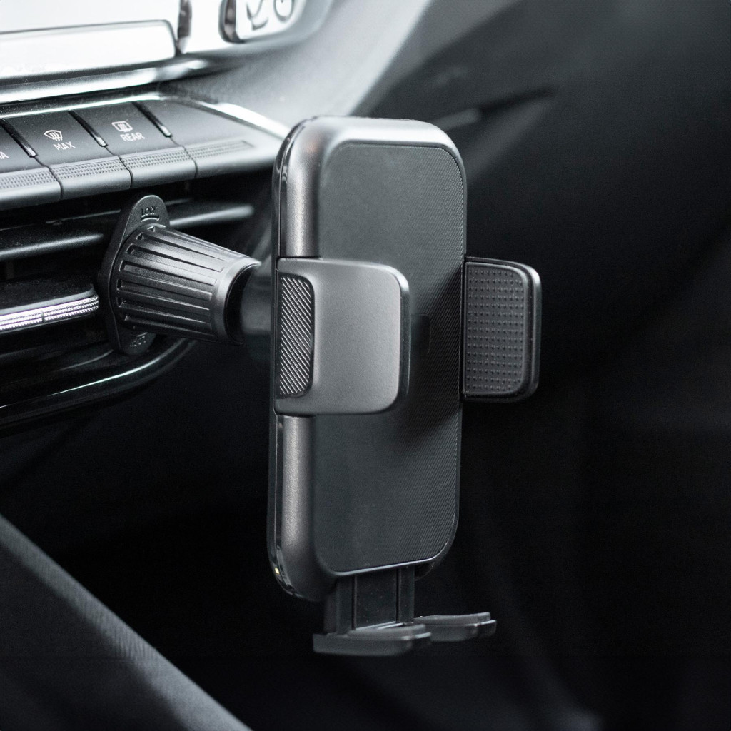 SAL SA063 autós mobiltartó, kb. 55 - 95 mm, félautomata, szellőzőre, egykezes, szilikon felület, forgatható, billenthető