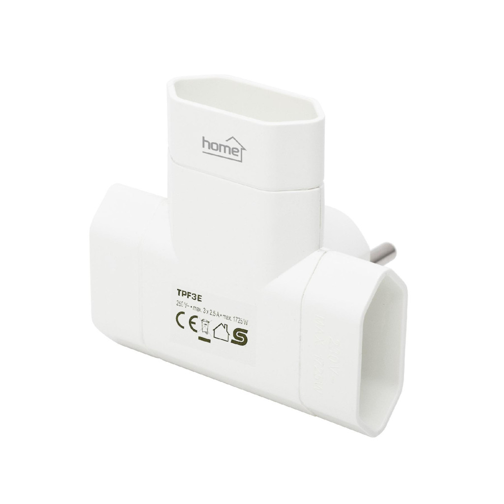 HOME TPF3E T elosztó, 3-as EURO aljzat, 250V~, max. 1850 W, 3x2,5A, fehér