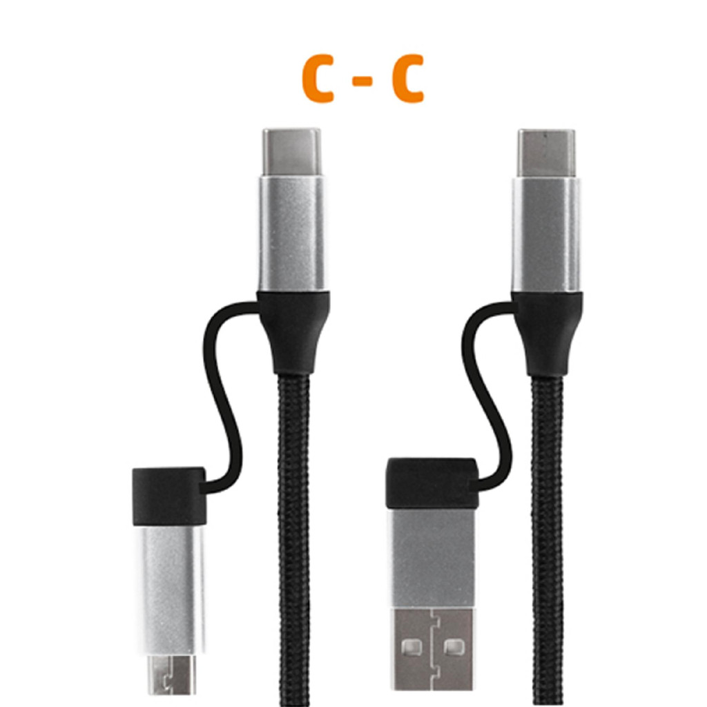 A 4in1 kialakítás lehetővé teszi a különböző eszközök gyors és hatékony töltését, legyen szó USB-C - USB-C, USB-C - microUSB, USB-C - USB-A vagy USB-A - microUSB kapcsolatról. A kábel támogatja a normál, QC (Quick Charge) és PD (Power Delivery) gyorstöltési technológiákat, így garantáltan gyors és biztonságos töltést nyújt a legtöbb modern eszközhöz, beleértve okostelefonokat, táblagépeket, notebookokat és egyéb kütyüket.