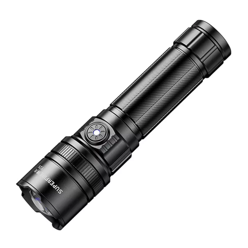 A Superfire Y25 kompakt méreteket és megbízható teljesítményt ötvöz, 10 W teljesítményt, 600 lumen fényerőt és akár 450 méteres hatótávolságot biztosít. A modern fehér lézerdióda használata lehetővé teszi egy nagy koncentrációjú, nagy áthatoló erejű fénysugár létrehozását, ami mind a terepen, mind a mindennapi használat során jó láthatóságot biztosít. Csak 90 g-os kis súlya és vékony kialakítása miatt a zseblámpa kényelmesen hordozható, és körülbelül 2,5 órás üzemideje lehetővé teszi a könnyű használatot különböző helyzetekben.