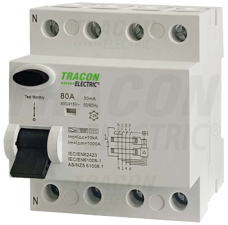 Tracon EVOB4P2503 Áram-védőkapcsoló, 4 pólusú