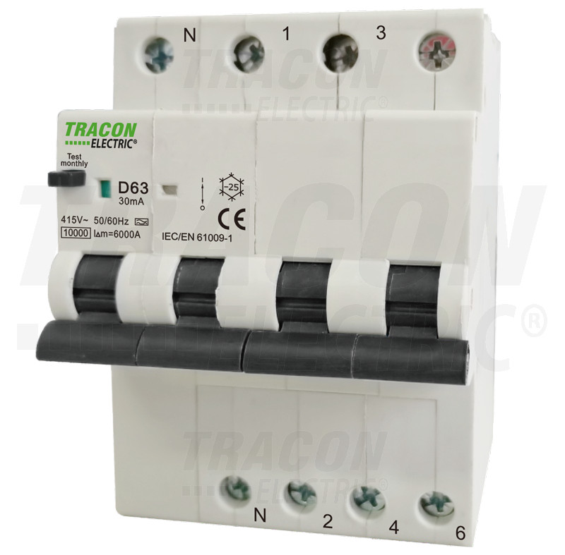 Tracon EVOK4B6303 Kombinált védőkapcsoló, 4P, 4modul, B karakterisztika