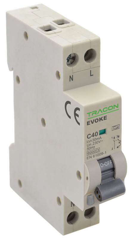 Tracon EVOKEAB1303 Kombinált védőkapcsoló, elektronikus, 2P, 1 modul, B kar.