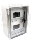 Műanyag elosztószekrény maszkos átlátszó ajtóval