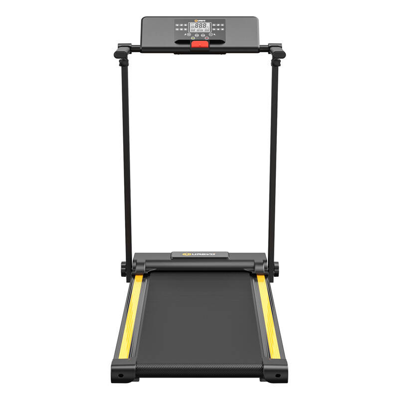 UREVO Foldi Mini összecsukható elektromos futópad (fekete és narancssárga).
